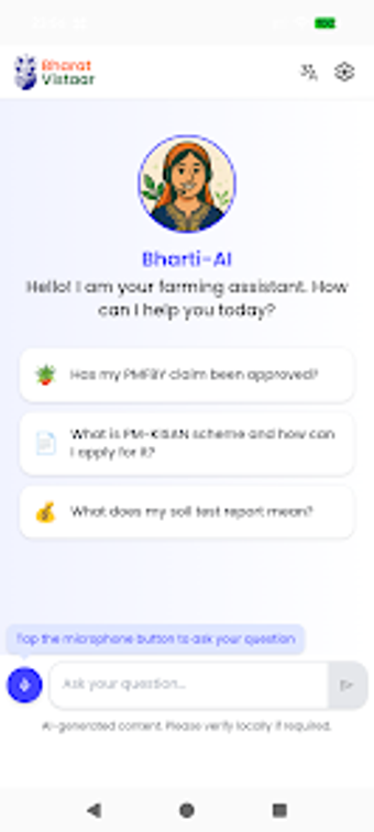 Bharat Vistaarは、農家を支援するために設計された革新的なAndroidアプリケーションで、AI駆動の農業インサイトを提供します。この無料の教育ツールは、農場の生産性を向上させ、信頼できる情報を提供することで農家の生活を簡素化し、より良い意思決定をサポートすることに焦点を当てています。主な機能には、インド農業研究評議会(ICAR)からのカスタマイズされた作物および家畜のアドバイス、インド気象局(IMD)からの天気予報が含まれています。